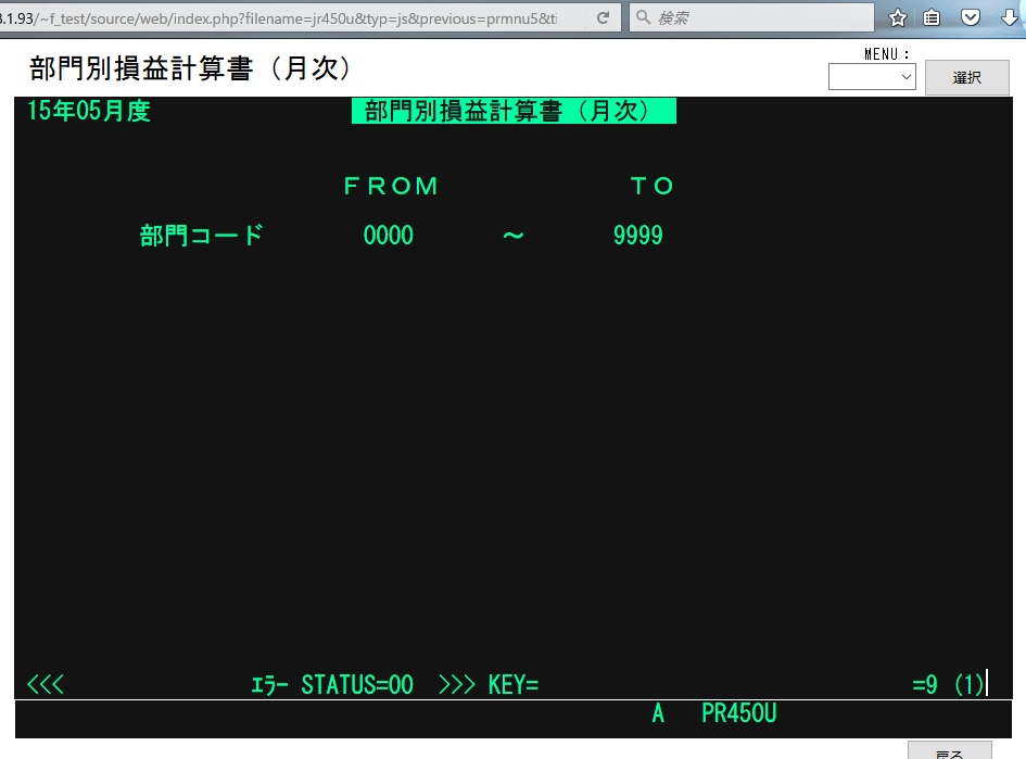 | 現象 | ・0_0_9999_9999_Enter_Enter_ 画面左上に表示されていた「15年06月度」が消える |
