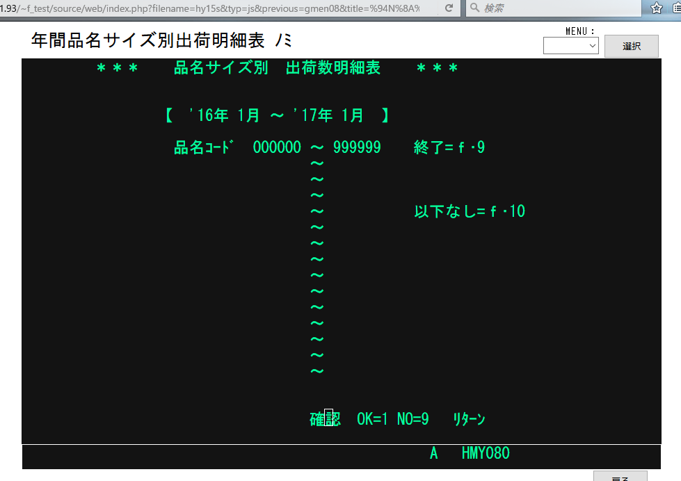 0601)確認のカーソルの位置がおかしい メニュー名 GMEN08 番号 26 PG名 hy15s.sh(HMY080) 現象 ・2_16_1_17_1_1_ 0_999999_[F10]_ 確認のカーソルの位置がおかしい 備考 発見日 2017/3/17 修正日 2017/7/19