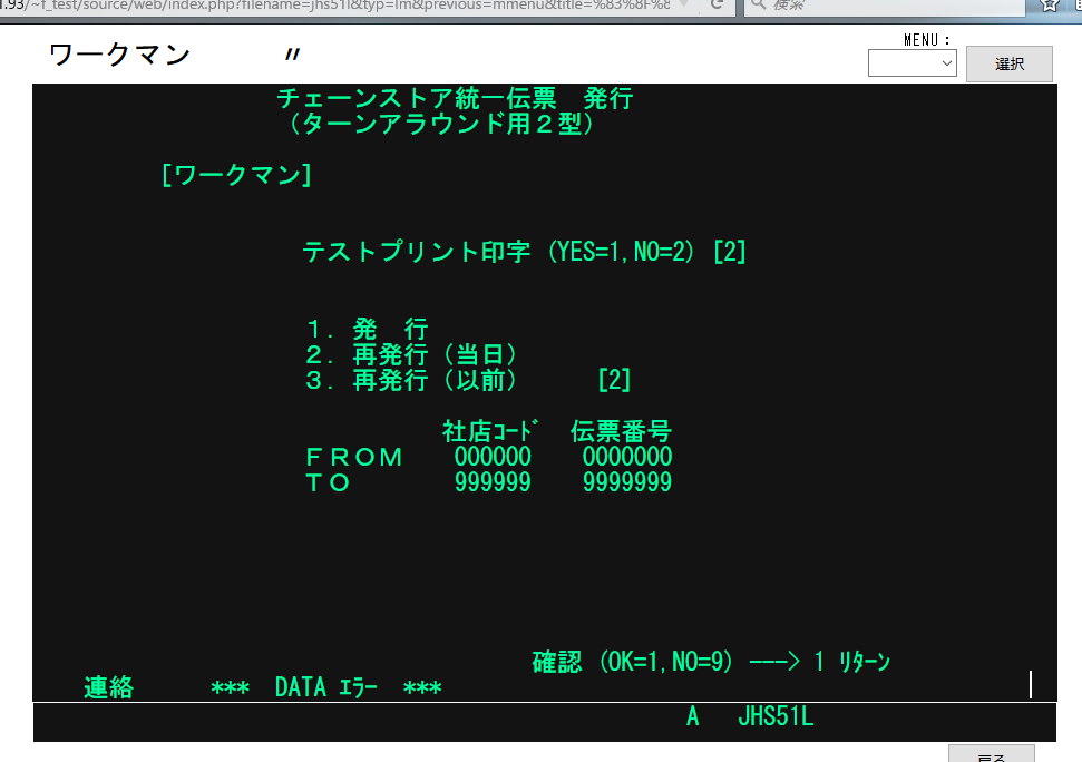 メニュー名 MMENU 番号 21 PG名 jan010.sh 現象 ・[Ctrl+F5]_