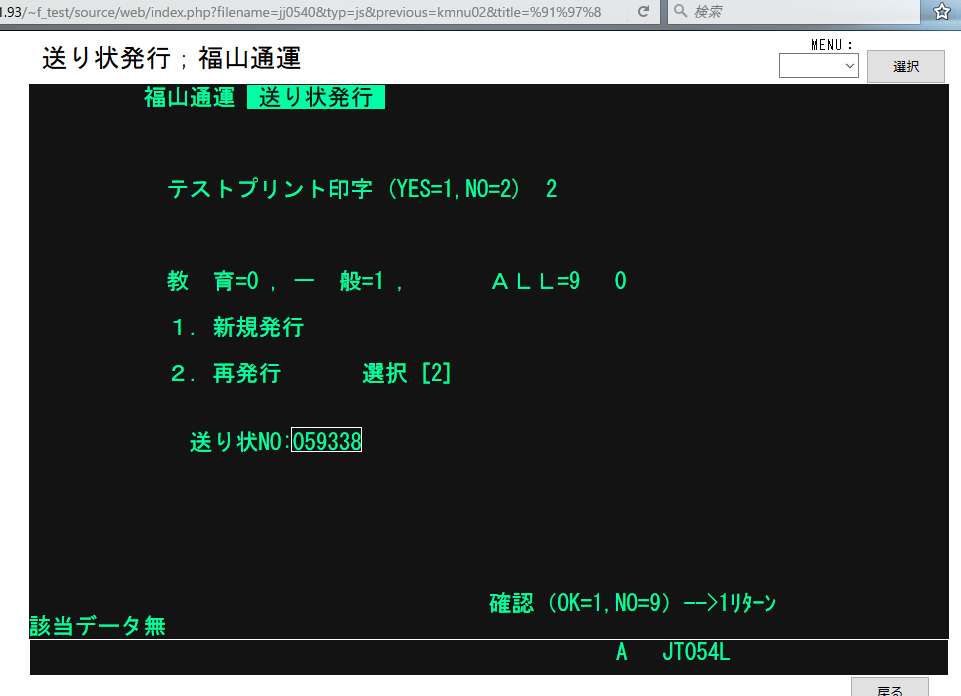 | 現象 | ・追加登録後 右上の発注No欄に数値が表示されるときとされないときがある。数値が表示された場合は一度この画面を閉じて開き直して2(変更)でデータが呼び出せるが、登録時にNoがふられてないものは一度画面を閉じると呼び出せない。閉じる前だと変更で呼び出せる!! |