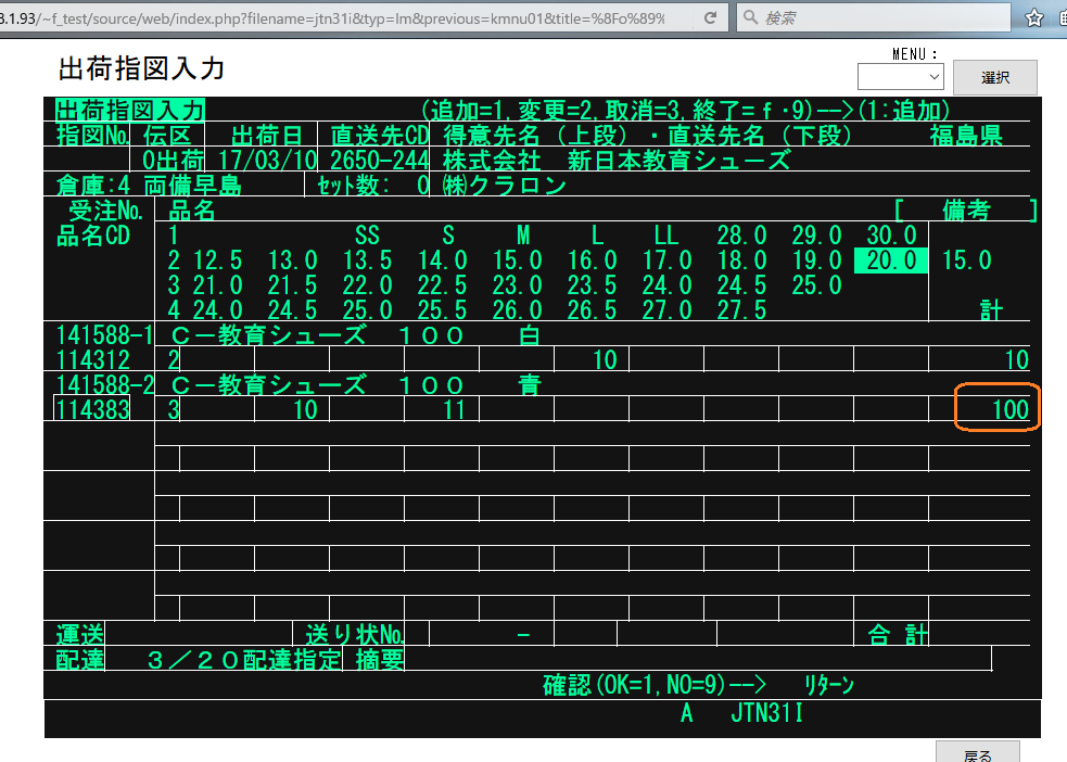 | 現象 | ・[Enter]_[Enter]_[Enter]_1_ 送り状データファイル生成2・3の画面でタイトルの横の( )の中身が空なのは |