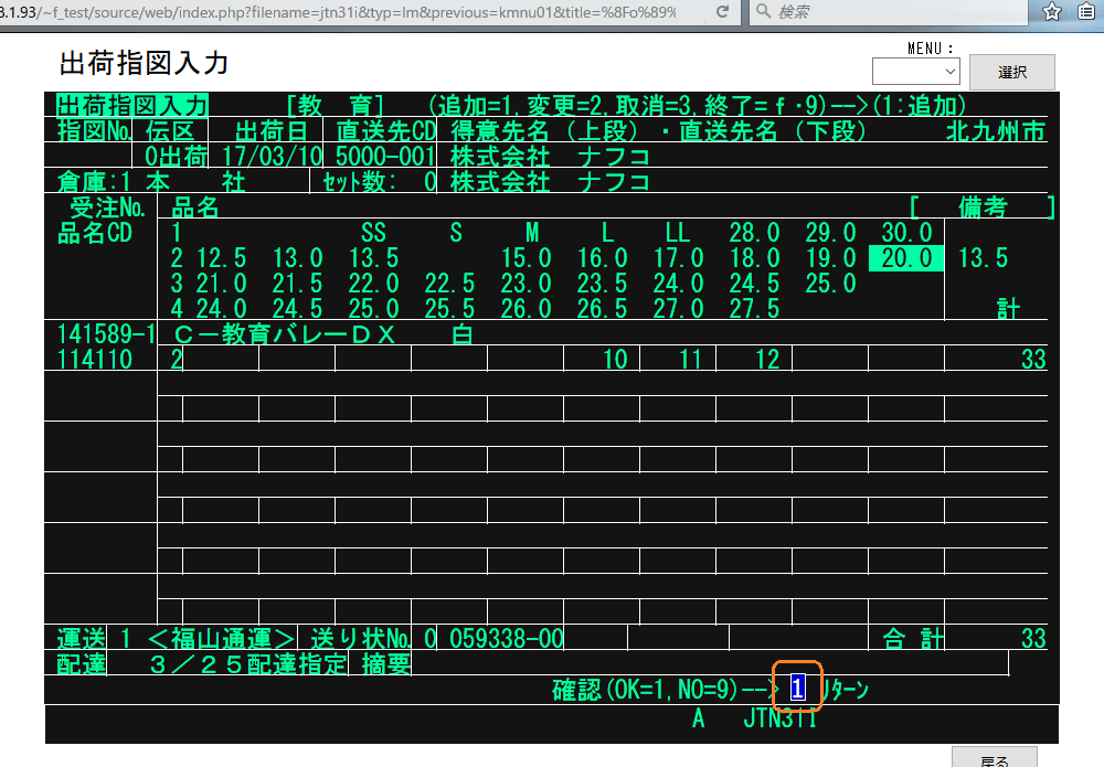 メニュー名 KMNU01 番号 6 PG名 JTN31I 現象 ・一度入力した受注Noのデータを再度入力しようとすると