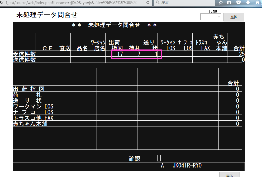 | 現象 | ・ 「* データ ナシ *」で処理終了 |