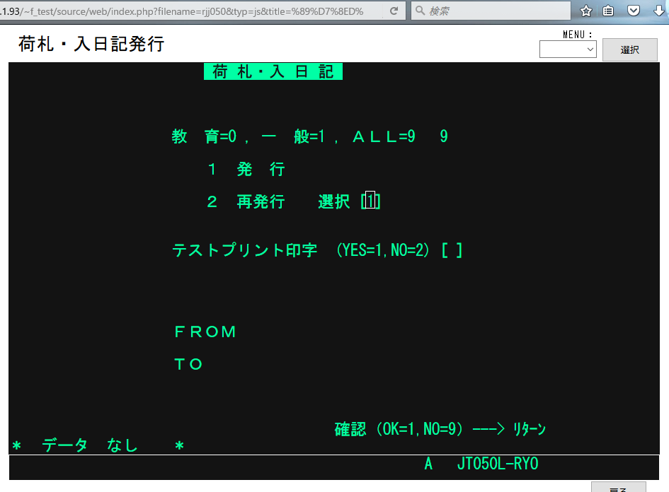 | 現象 | ・初期起動時 「* DATA ナシ *」で処理終了 |