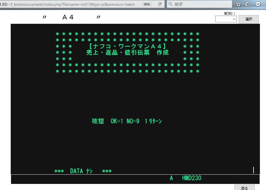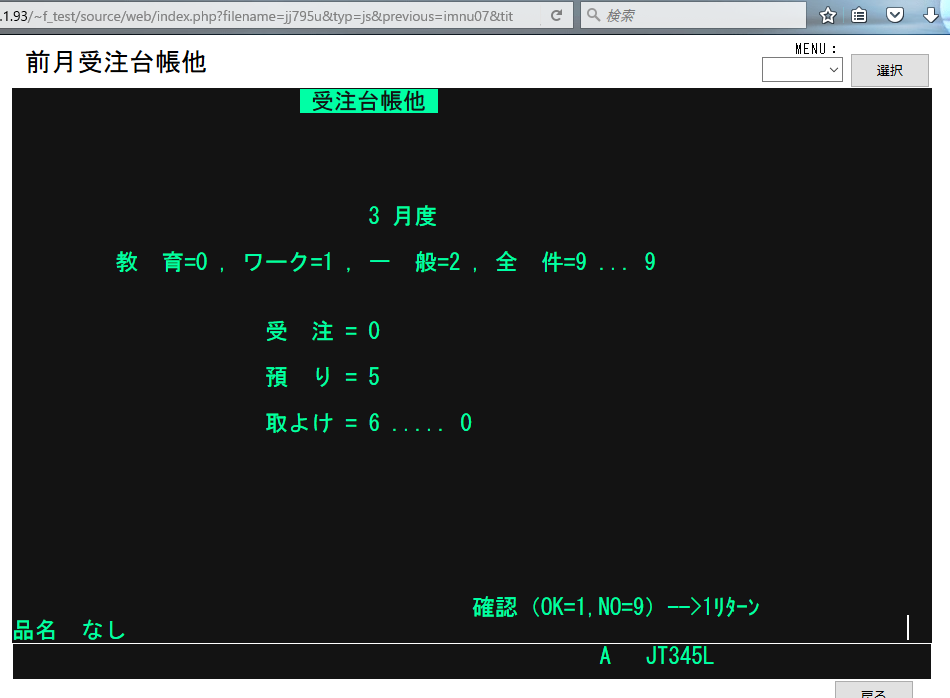| 現象 | ・1_ 「* データ ナシ *」で処理終了 |