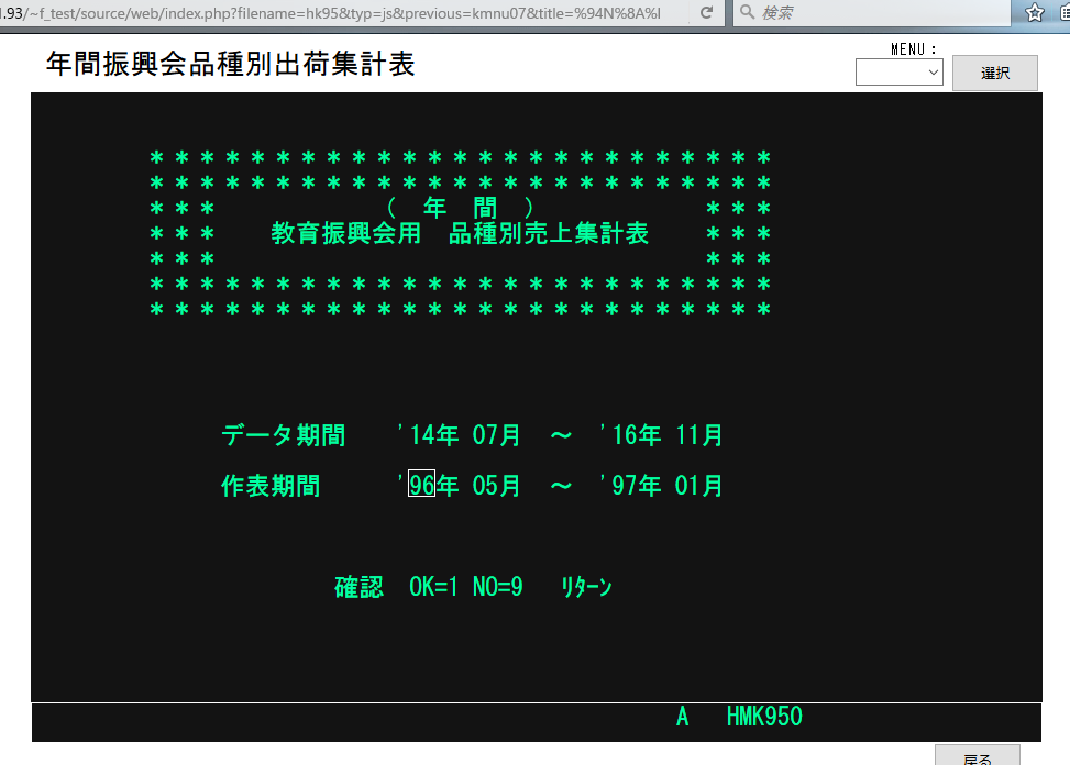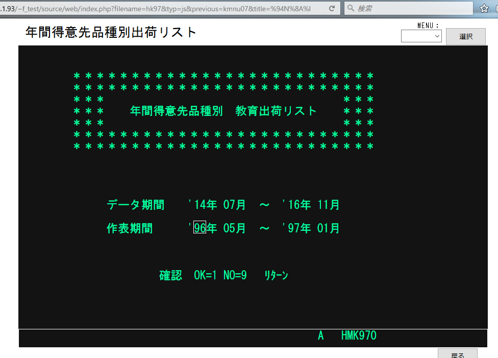 | 備考 | IMNU09-20-15で(0:解除)を行うと動く 2番目のCOBOLがJRCODE=200で終了すると何もなく終わる 「エラーが出ていなければ」->「何かキーを押すと」に変更 |