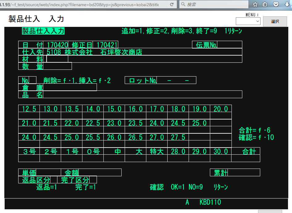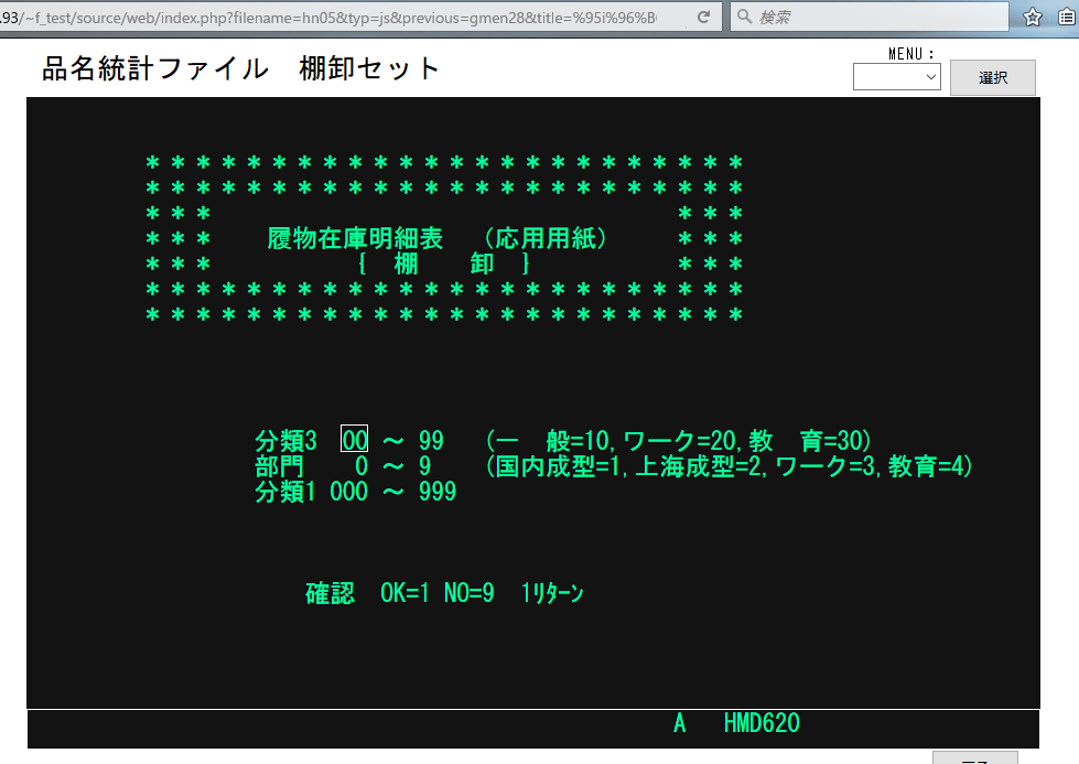 カーソルが進まない備考 問合せ機能なはずなので、1,2,3は入力できない。