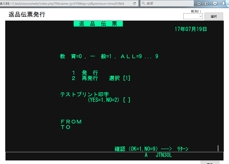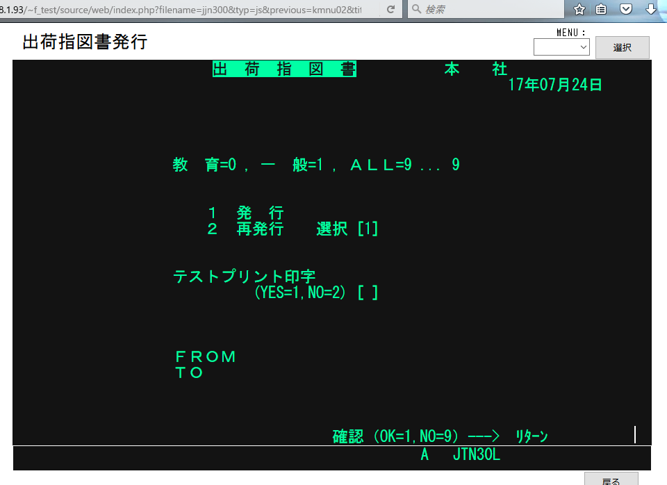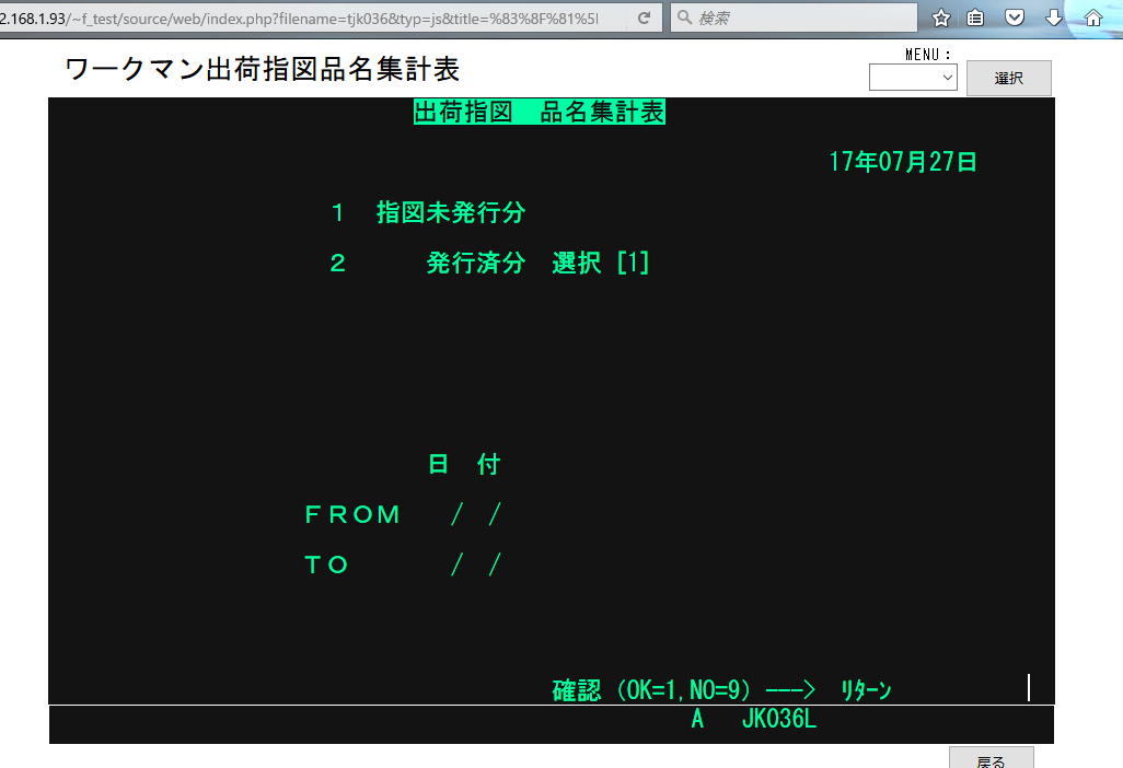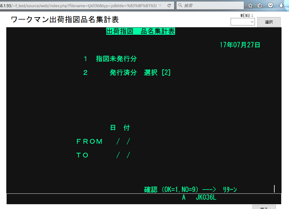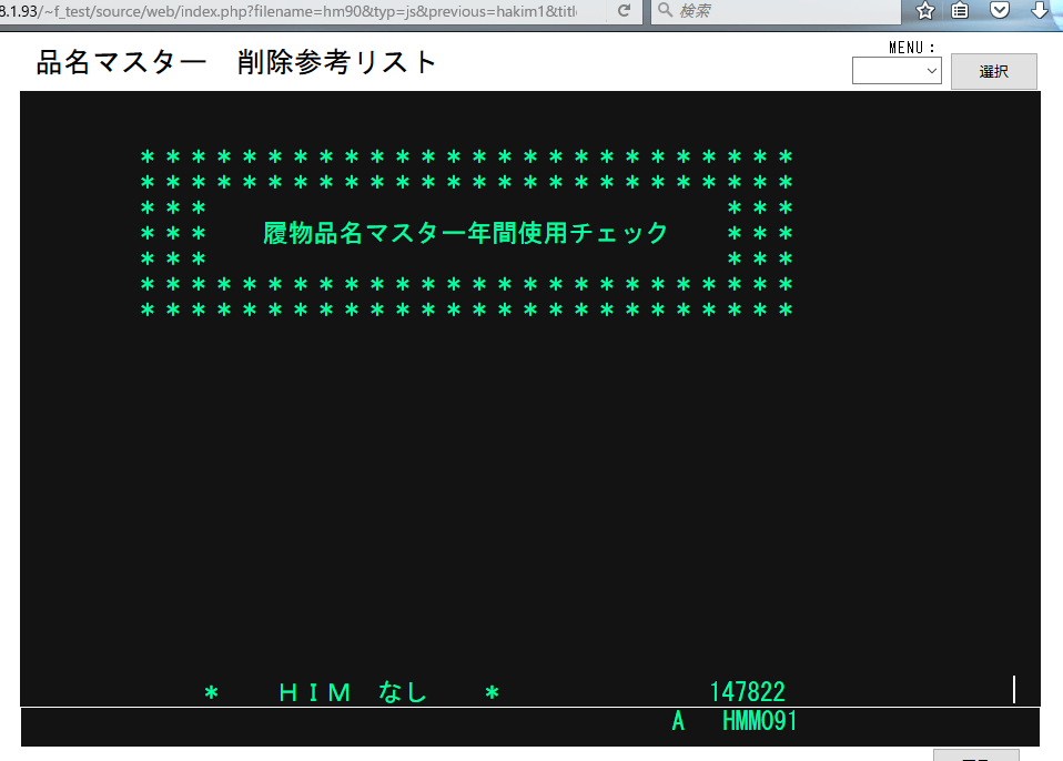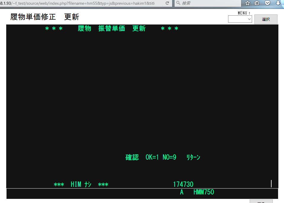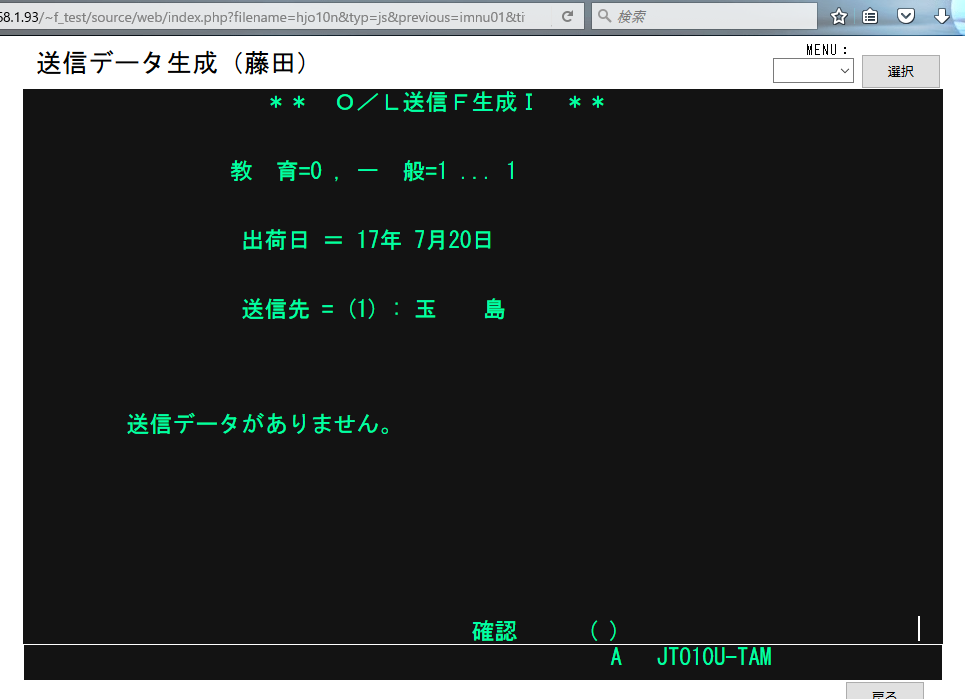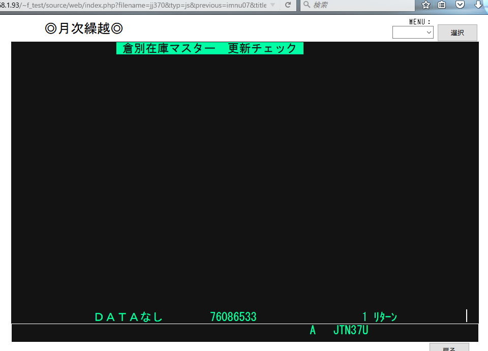 | 現象 | ・Ctrl+F5 「*** ミコウシン データ アリ ***」になる。画面が変化しないためエンター等を押してしまうとエラーが見えないまま終了する |